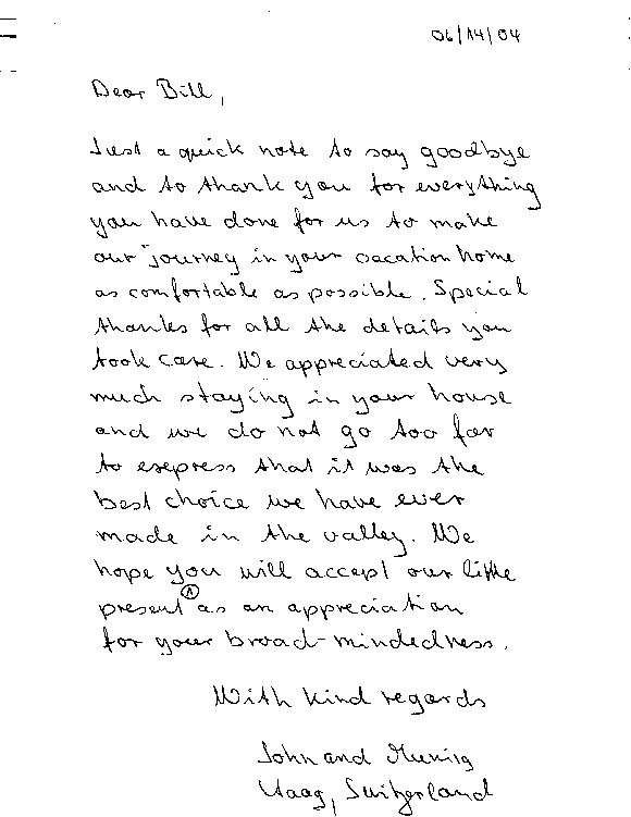 Thank you to the Haag's for traveling all the way from Switzerland and staying at the condo every year.